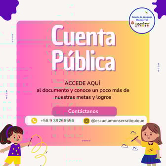 Escuela de Lenguaje Monserrat Iquique es un Establecimiento de EDUCACIÓN PARVULARIA que recibe a niños y niñas que presentan Trastorno del Lenguaje.